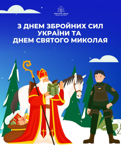 Освітній центр Верховної Ради України вітає із двома надважливими святами: Днем Святого Миколая і Днем Збройних Сил України!