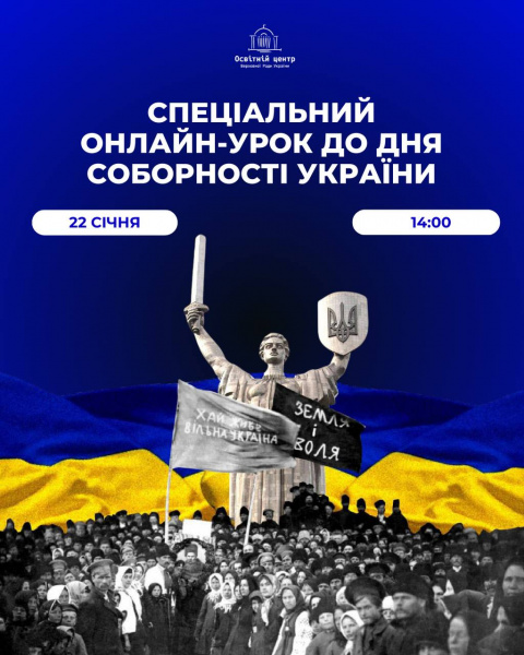 Освітній центр анонсує спеціальний онлайн-урок до Дня Соборності України!