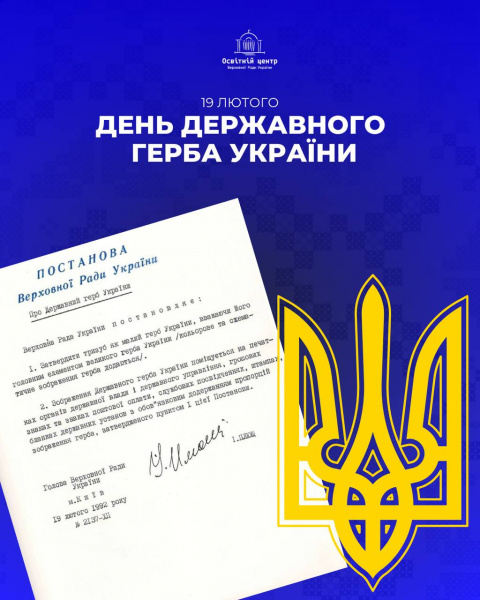 19 лютого 1992 року Верховна Рада України ухвалила постанову про затвердження Державного Герба України.