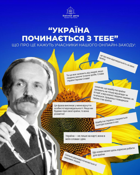 Сьогодні Освітній центр Верховної Ради України спільно з Національним музеєм історії України провів важливий онлайн-урок до Дня пам’яті українського політика, дисидента та борця за незалежність – В’ячеслава Чорновола.