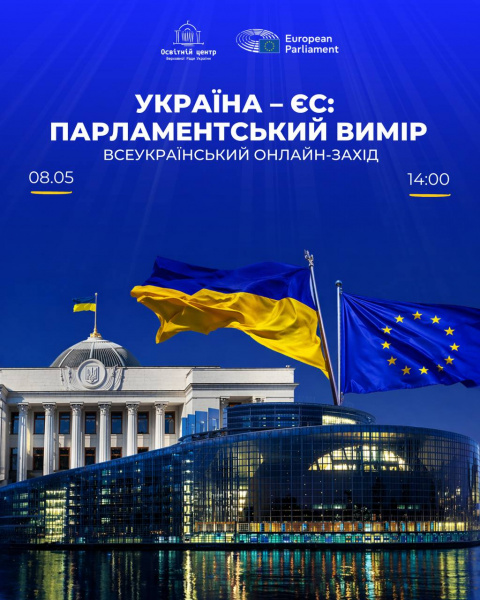 До Дня Європи Освітній центр Верховної Ради України анонсує всеукраїнський онлайн-захід, організований спільно з Постійним представництвом Європейського Парламенту в Києві.